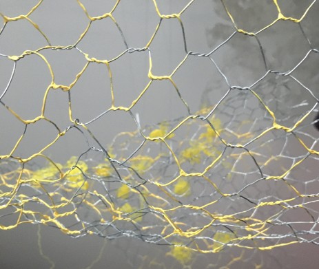 "messaggera che viaggia sui sentieri della luce" così gli antichi consideravano l'ape. Essa portava con sè i messaggi che gli uomini inviavano agli Dei. Le api usano luce polarizzata, invisibile agli esseri umani, per trovare la fonte di approvvigionamento per il miele. "Esse comunicano fra loro dove si trova il nettare traducendo in danza la loro mappa" (Queensland Brain Institute) Anche in giorni senza luce le api possono "navigare" fino a trovare la fonte di miele interpretando la configurazione della luce polarizzata nel cielo. "Raggio di Azione" utilizza fili trasparenti per rappresentare la luce guida su cui simbolicamente viaggiano le api in direzione del polline. I fiori sono rappresentati da una nuvola gialla delicamente adagiata su una rete che si ispira alla caratteristica forma esogonale dell'alveare. La vorticosa struttura reticolare è vincolata da fili e grazie ad una idonea fonte luminosa gli stessi assumono un suggestivo effetto polarizzante. La dinamicità della rete fa sì che il visitatore possa attraversarla lasciandosi lambire da una miriade di steli penzolanti. Il movimento degli stessi è sincronzzato ad un sensore che riproduce il linguaggio delle api. Nell'antico egitto si pensava che l'ape fosse nata dalle lacrime del Dio "Ra" e la sua cera era onorata come sacra.Svariati popoli trassero lezioni dall'organizzazione sociale delle api Gli insetti impollinatori come le api sono indispensabili per garantire la biodiversità e raggiungere gli Obiettivi di Sviluppo Sostenibile, ma sono a grave rischio di estinsione.